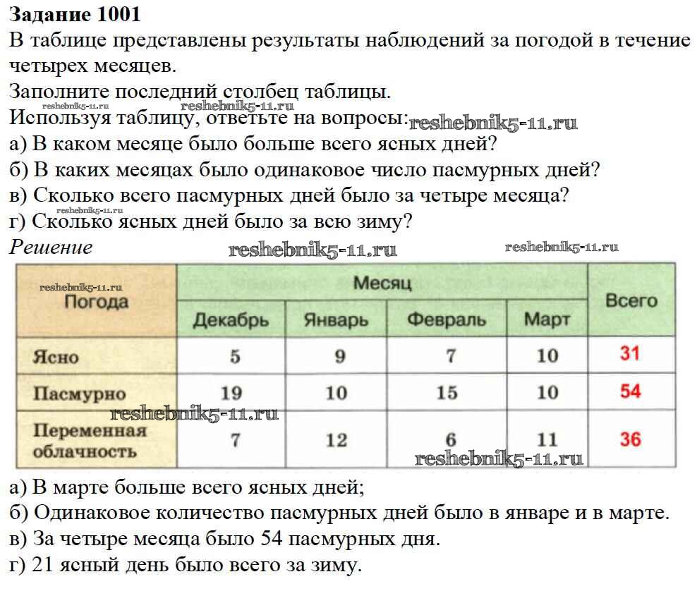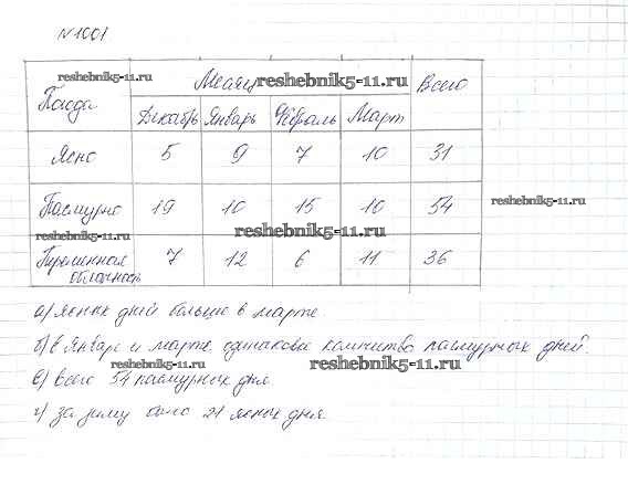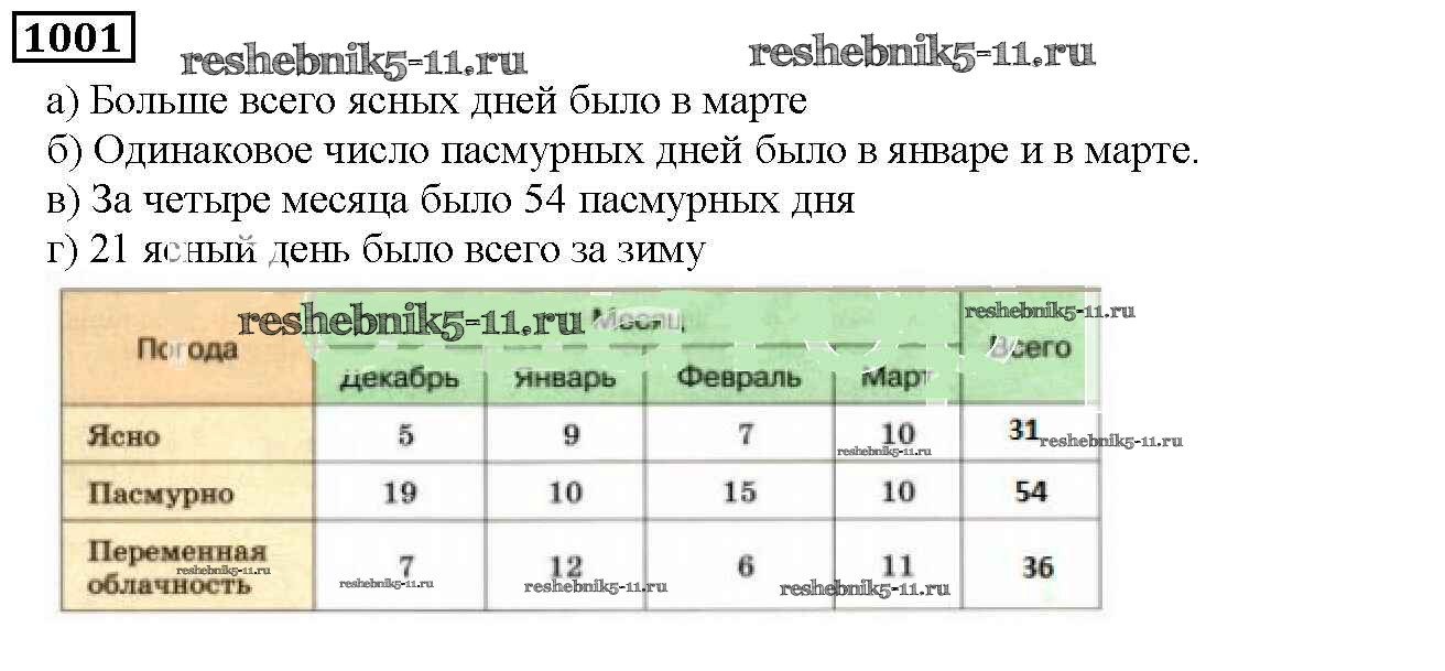 Готовая домашняя работа с ответами по Математике за 5 класс Дорофеев, Шарыгин, Суворова, Бунимович, Кузнецова, Минаева, Рослова Учебник Просвещение 2015 ФГОС - 11.1. Чтение и составление таблиц 1001