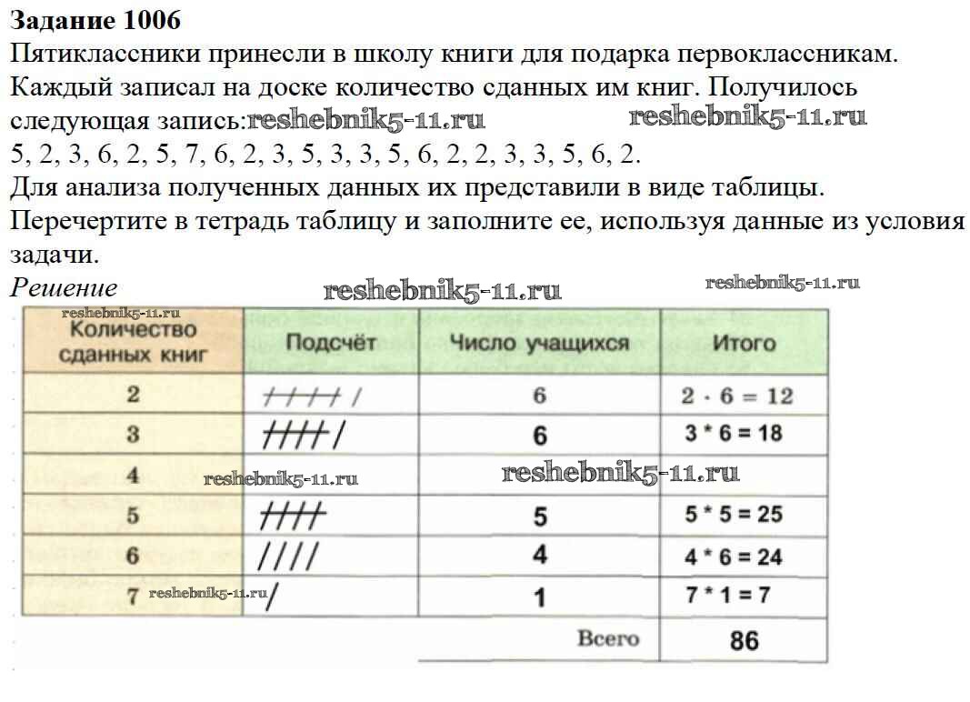 Готовая домашняя работа с ответами по Математике за 5 класс Дорофеев, Шарыгин, Суворова, Бунимович, Кузнецова, Минаева, Рослова Учебник Просвещение 2015 ФГОС - 11.1. Чтение и составление таблиц 1006