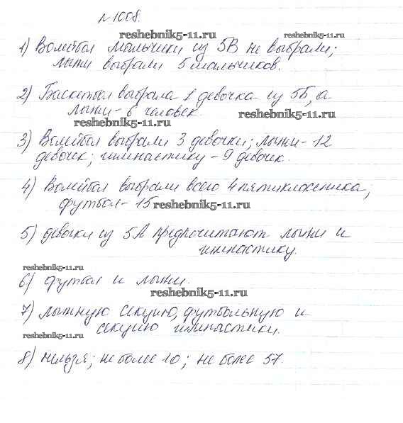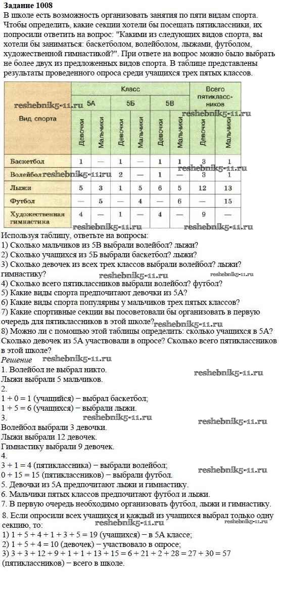 Готовая домашняя работа с ответами по Математике за 5 класс Дорофеев, Шарыгин, Суворова, Бунимович, Кузнецова, Минаева, Рослова Учебник Просвещение 2015 ФГОС - 11.1. Чтение и составление таблиц 1008