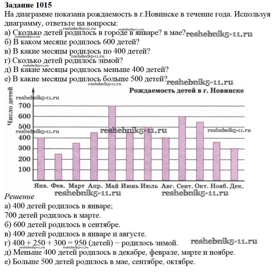 Готовая домашняя работа с ответами по Математике за 5 класс Дорофеев, Шарыгин, Суворова, Бунимович, Кузнецова, Минаева, Рослова Учебник Просвещение 2015 ФГОС - 11.2. Диаграммы 1015
