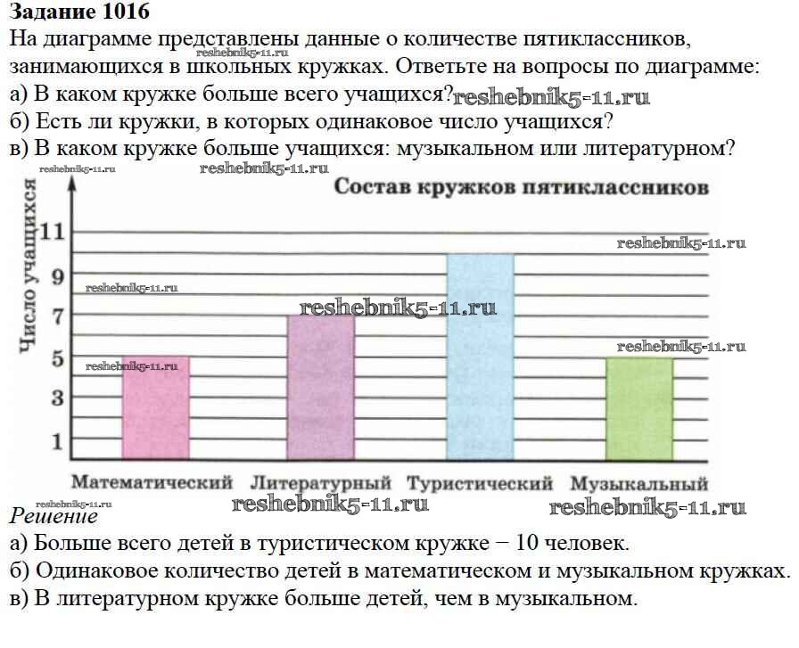 Готовая домашняя работа с ответами по Математике за 5 класс Дорофеев, Шарыгин, Суворова, Бунимович, Кузнецова, Минаева, Рослова Учебник Просвещение 2015 ФГОС - 11.2. Диаграммы 1016