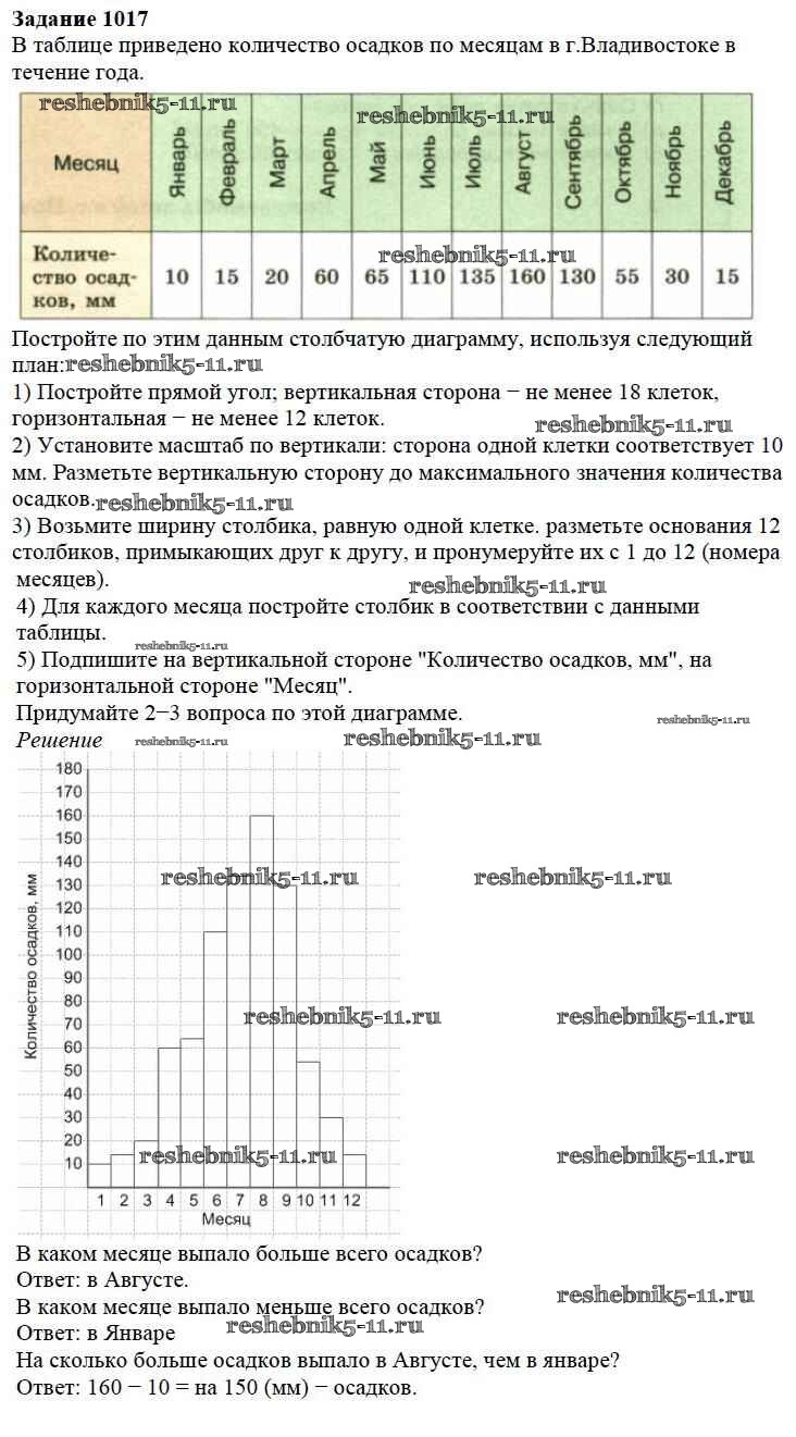 Готовая домашняя работа с ответами по Математике за 5 класс Дорофеев, Шарыгин, Суворова, Бунимович, Кузнецова, Минаева, Рослова Учебник Просвещение 2015 ФГОС - 11.2. Диаграммы 1017