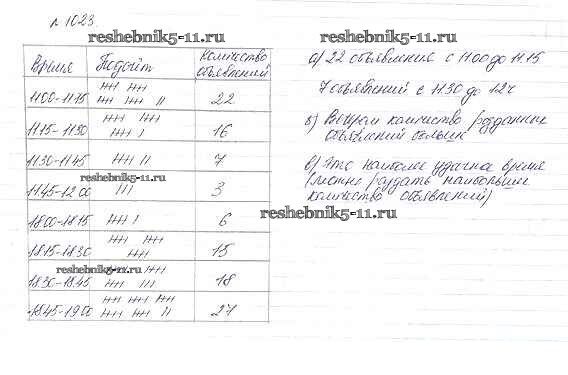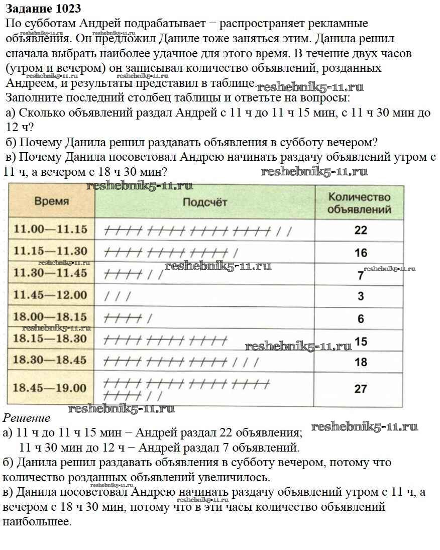 Готовая домашняя работа с ответами по Математике за 5 класс Дорофеев, Шарыгин, Суворова, Бунимович, Кузнецова, Минаева, Рослова Учебник Просвещение 2015 ФГОС - 11.3. Опрос общественного мнения 1023