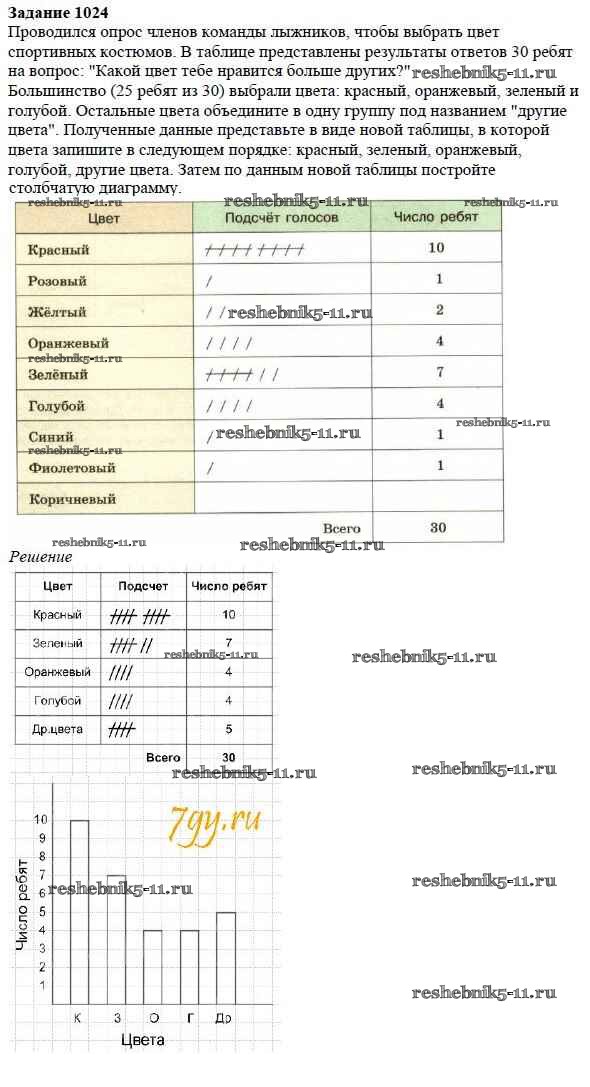 Готовая домашняя работа с ответами по Математике за 5 класс Дорофеев, Шарыгин, Суворова, Бунимович, Кузнецова, Минаева, Рослова Учебник Просвещение 2015 ФГОС - 11.3. Опрос общественного мнения 1024