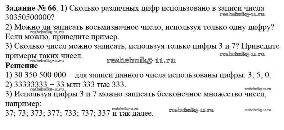 Готовая домашняя работа с ответами по Математике за 5 класс Дорофеев, Шарыгин, Суворова, Бунимович, Кузнецова, Минаева, Рослова Учебник Просвещение 2015 ФГОС - 2.1. Как записывают и читают натуральные числа 66