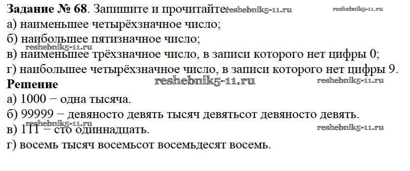 Готовая домашняя работа с ответами по Математике за 5 класс Дорофеев, Шарыгин, Суворова, Бунимович, Кузнецова, Минаева, Рослова Учебник Просвещение 2015 ФГОС - 2.1. Как записывают и читают натуральные числа 68