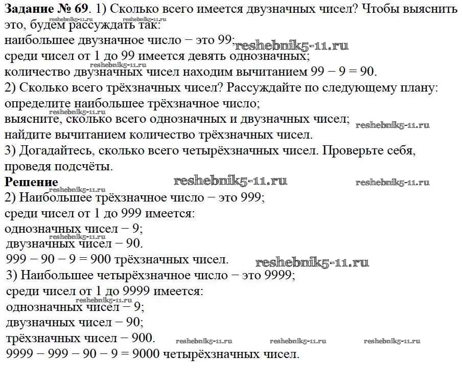 Готовая домашняя работа с ответами по Математике за 5 класс Дорофеев, Шарыгин, Суворова, Бунимович, Кузнецова, Минаева, Рослова Учебник Просвещение 2015 ФГОС - 2.1. Как записывают и читают натуральные числа 69