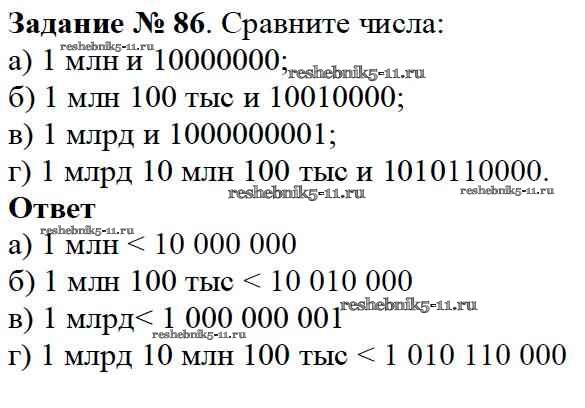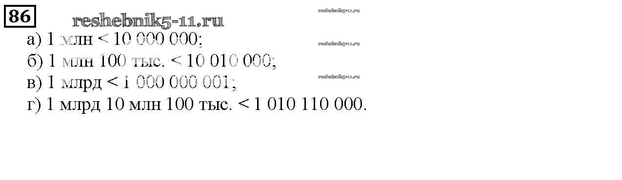 Готовая домашняя работа с ответами по Математике за 5 класс Дорофеев, Шарыгин, Суворова, Бунимович, Кузнецова, Минаева, Рослова Учебник Просвещение 2015 ФГОС - 2.2. Натуральный ряд. Сравнение натуральных чисел 86