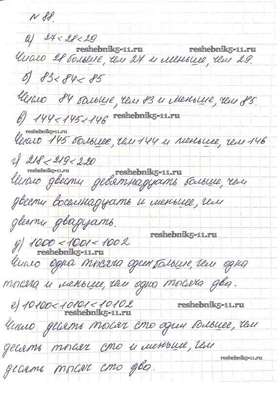 Готовая домашняя работа с ответами по Математике за 5 класс Дорофеев, Шарыгин, Суворова, Бунимович, Кузнецова, Минаева, Рослова Учебник Просвещение 2015 ФГОС - 2.2. Натуральный ряд. Сравнение натуральных чисел 88