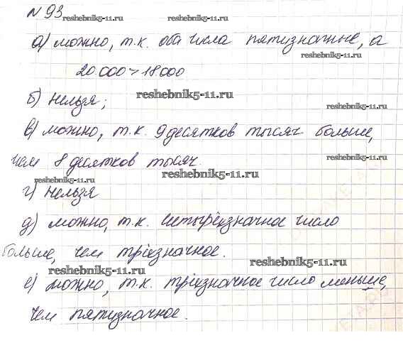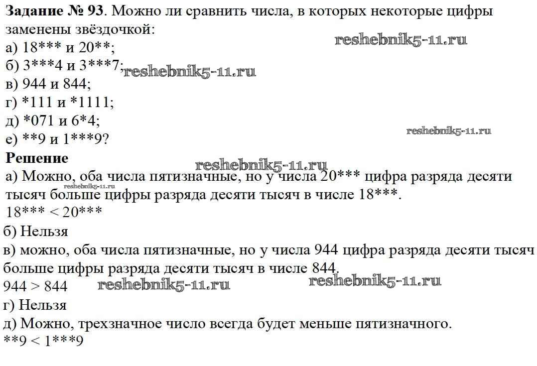 Готовая домашняя работа с ответами по Математике за 5 класс Дорофеев, Шарыгин, Суворова, Бунимович, Кузнецова, Минаева, Рослова Учебник Просвещение 2015 ФГОС - 2.2. Натуральный ряд. Сравнение натуральных чисел 93