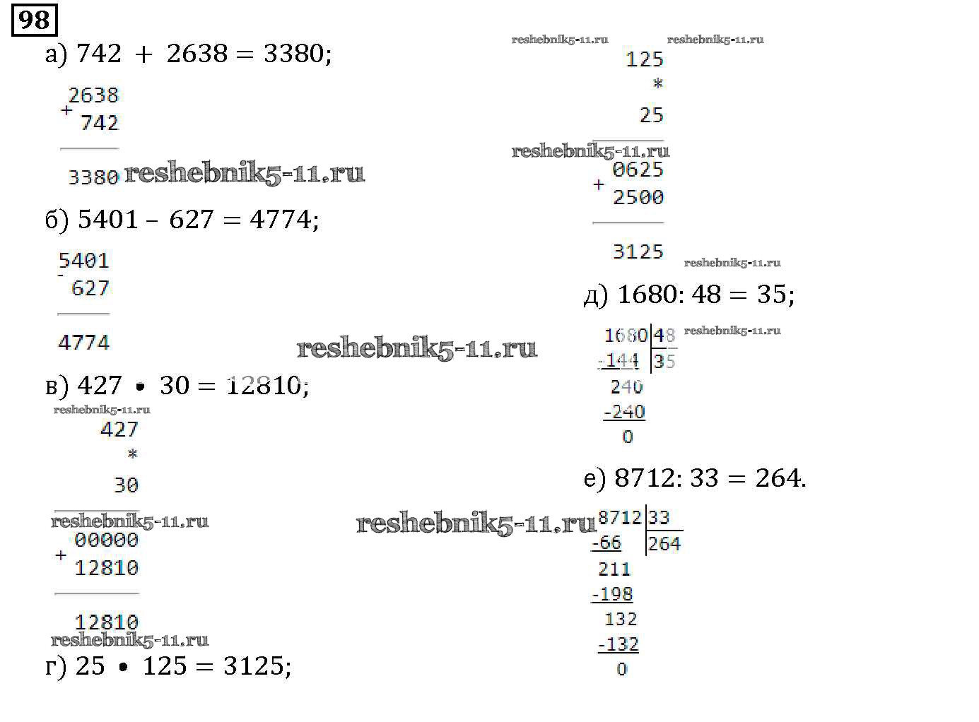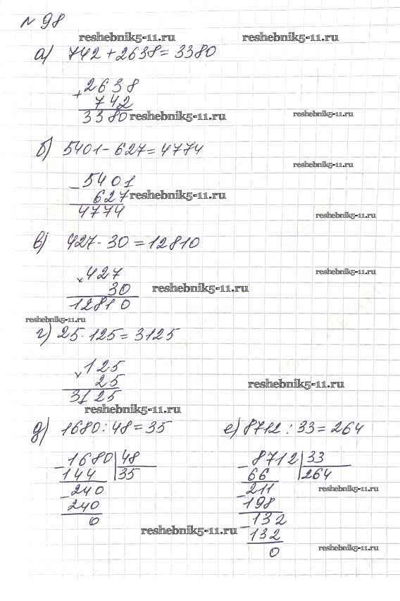 Готовая домашняя работа с ответами по Математике за 5 класс Дорофеев, Шарыгин, Суворова, Бунимович, Кузнецова, Минаева, Рослова Учебник Просвещение 2015 ФГОС - 2.2. Натуральный ряд. Сравнение натуральных чисел 98