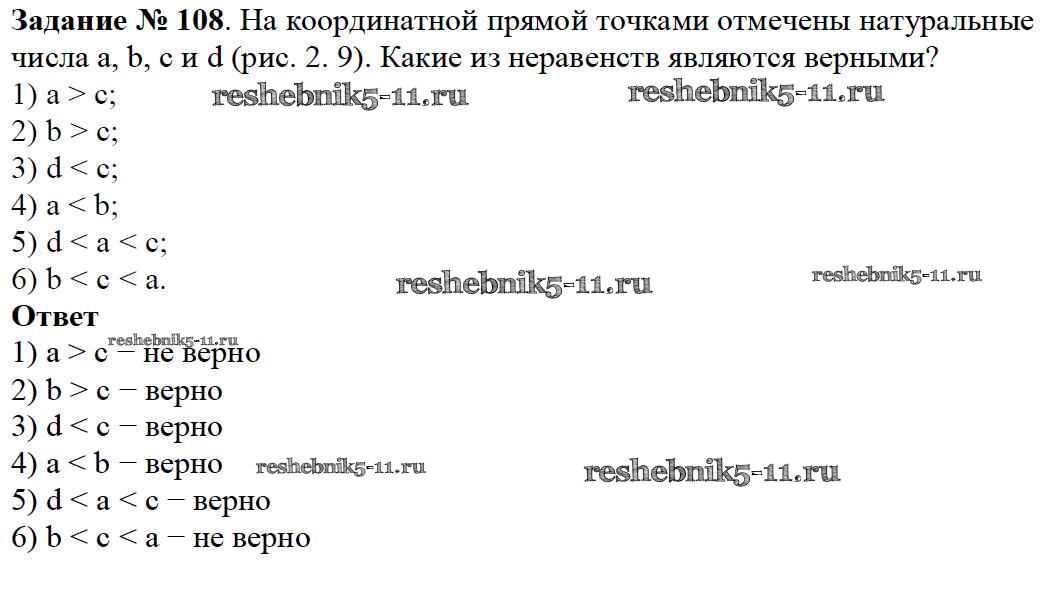 Готовая домашняя работа с ответами по Математике за 5 класс Дорофеев, Шарыгин, Суворова, Бунимович, Кузнецова, Минаева, Рослова Учебник Просвещение 2015 ФГОС - 2.3. Числа и точки на прямой 108