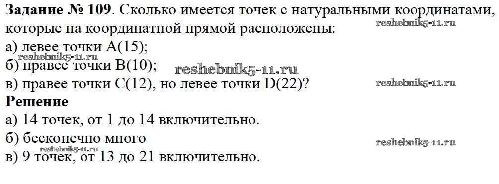 Готовая домашняя работа с ответами по Математике за 5 класс Дорофеев, Шарыгин, Суворова, Бунимович, Кузнецова, Минаева, Рослова Учебник Просвещение 2015 ФГОС - 2.3. Числа и точки на прямой 109