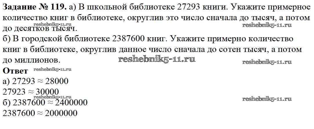 Готовая домашняя работа с ответами по Математике за 5 класс Дорофеев, Шарыгин, Суворова, Бунимович, Кузнецова, Минаева, Рослова Учебник Просвещение 2015 ФГОС - 2.4. Округление натуральных чисел 119