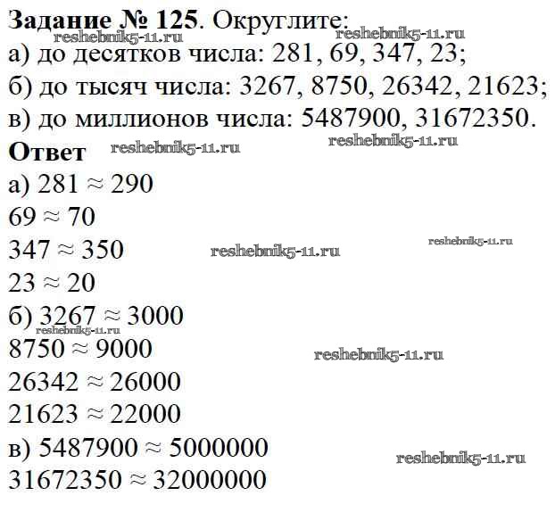 Готовая домашняя работа с ответами по Математике за 5 класс Дорофеев, Шарыгин, Суворова, Бунимович, Кузнецова, Минаева, Рослова Учебник Просвещение 2015 ФГОС - 2.4. Округление натуральных чисел 125