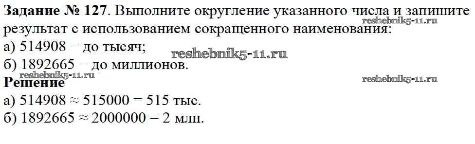 Готовая домашняя работа с ответами по Математике за 5 класс Дорофеев, Шарыгин, Суворова, Бунимович, Кузнецова, Минаева, Рослова Учебник Просвещение 2015 ФГОС - 2.4. Округление натуральных чисел 127