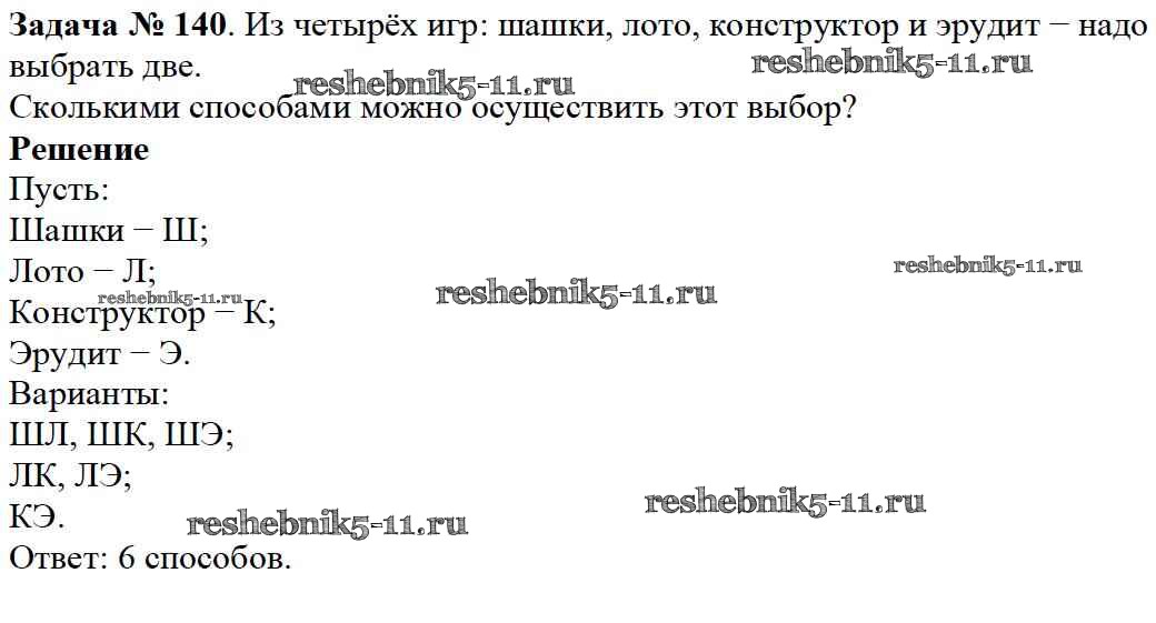 Готовая домашняя работа с ответами по Математике за 5 класс Дорофеев, Шарыгин, Суворова, Бунимович, Кузнецова, Минаева, Рослова Учебник Просвещение 2015 ФГОС - 2.5. Решение комбинаторных задач 140