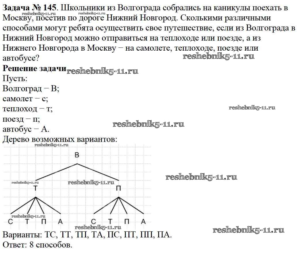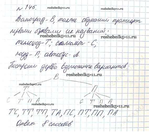 Готовая домашняя работа с ответами по Математике за 5 класс Дорофеев, Шарыгин, Суворова, Бунимович, Кузнецова, Минаева, Рослова Учебник Просвещение 2015 ФГОС - 2.5. Решение комбинаторных задач 145