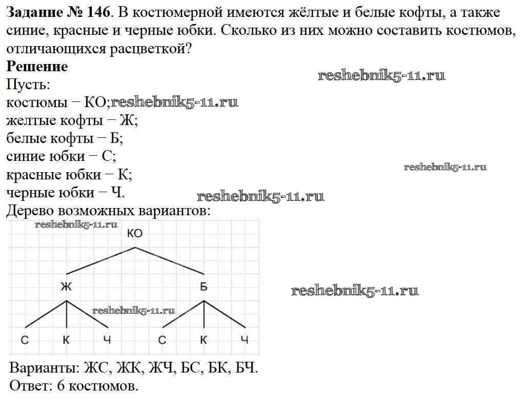 Готовая домашняя работа с ответами по Математике за 5 класс Дорофеев, Шарыгин, Суворова, Бунимович, Кузнецова, Минаева, Рослова Учебник Просвещение 2015 ФГОС - 2.5. Решение комбинаторных задач 146
