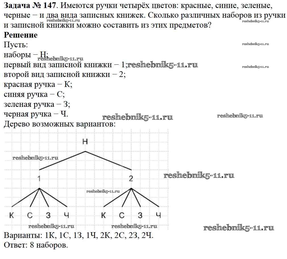Готовая домашняя работа с ответами по Математике за 5 класс Дорофеев, Шарыгин, Суворова, Бунимович, Кузнецова, Минаева, Рослова Учебник Просвещение 2015 ФГОС - 2.5. Решение комбинаторных задач 147