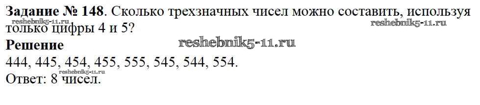 Готовая домашняя работа с ответами по Математике за 5 класс Дорофеев, Шарыгин, Суворова, Бунимович, Кузнецова, Минаева, Рослова Учебник Просвещение 2015 ФГОС - 2.5. Решение комбинаторных задач 148
