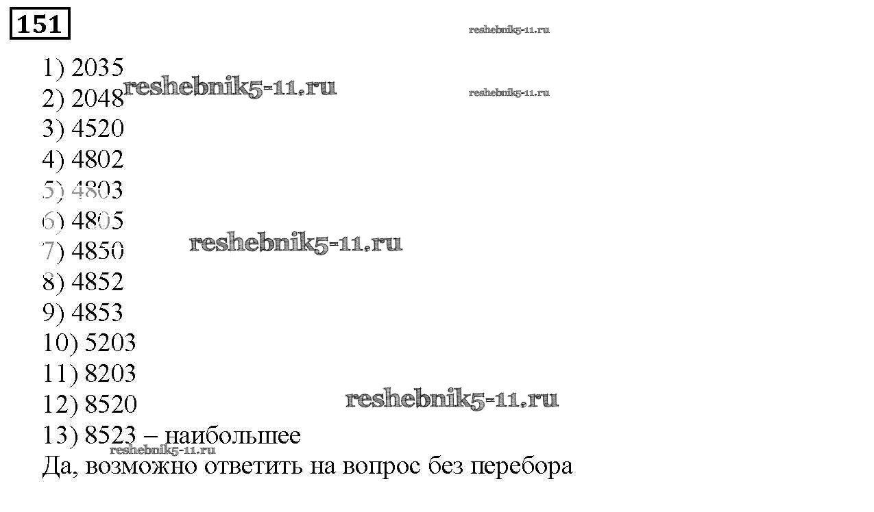 Готовая домашняя работа с ответами по Математике за 5 класс Дорофеев, Шарыгин, Суворова, Бунимович, Кузнецова, Минаева, Рослова Учебник Просвещение 2015 ФГОС - 2.5. Решение комбинаторных задач 151
