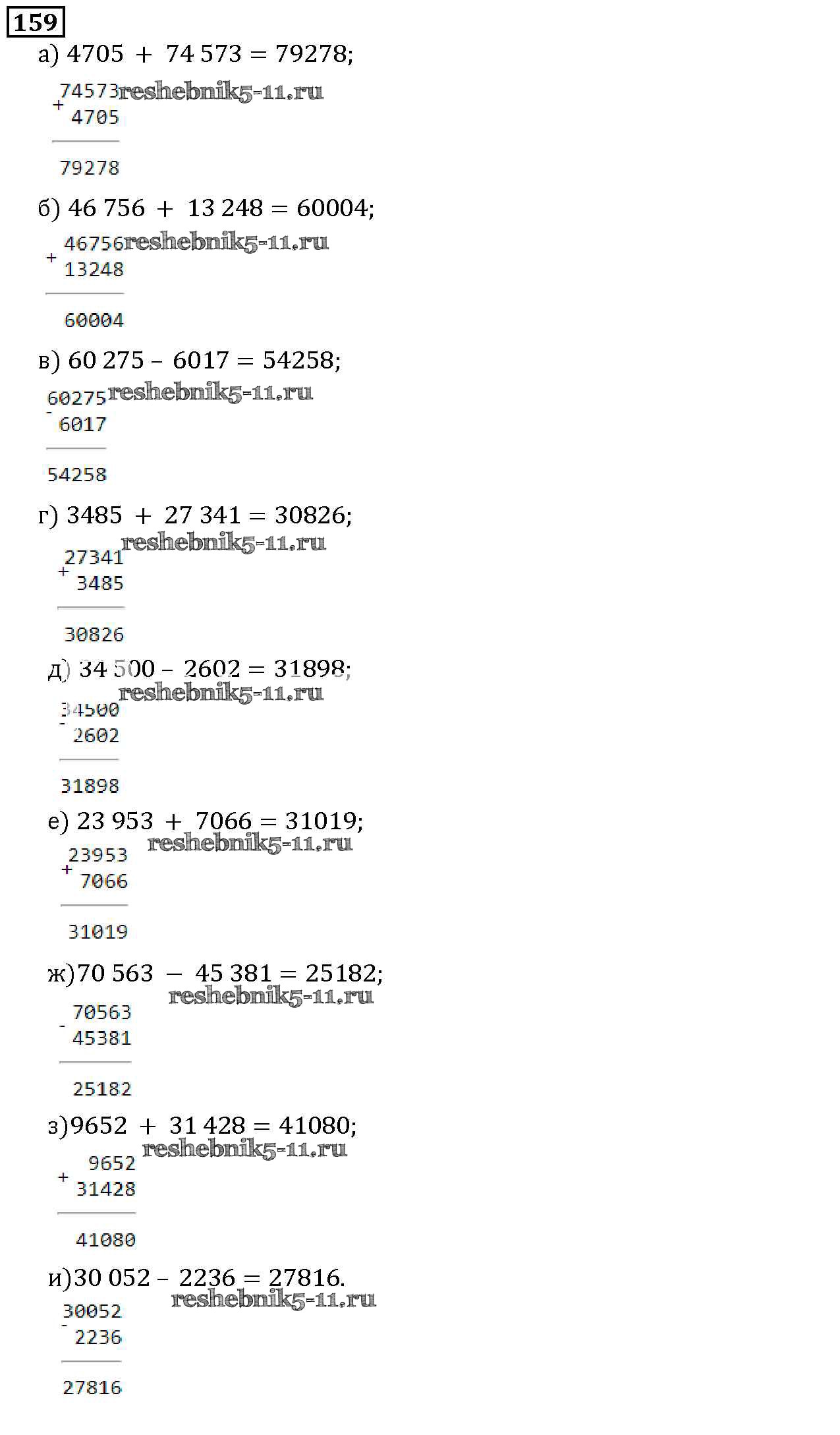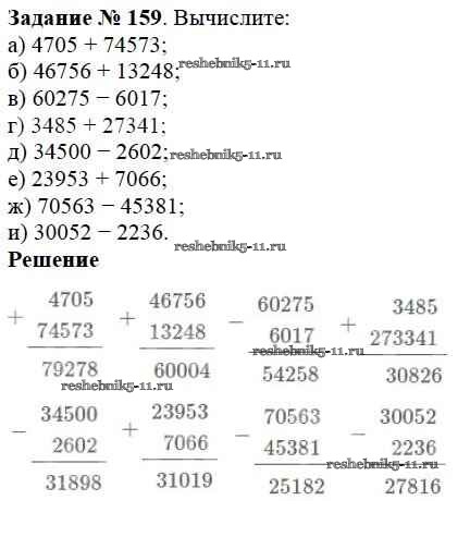 Готовая домашняя работа с ответами по Математике за 5 класс Дорофеев, Шарыгин, Суворова, Бунимович, Кузнецова, Минаева, Рослова Учебник Просвещение 2015 ФГОС - 3.1. Сложение и вычитание 159