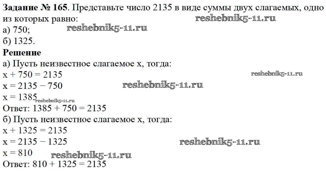 Готовая домашняя работа с ответами по Математике за 5 класс Дорофеев, Шарыгин, Суворова, Бунимович, Кузнецова, Минаева, Рослова Учебник Просвещение 2015 ФГОС - 3.1. Сложение и вычитание 165