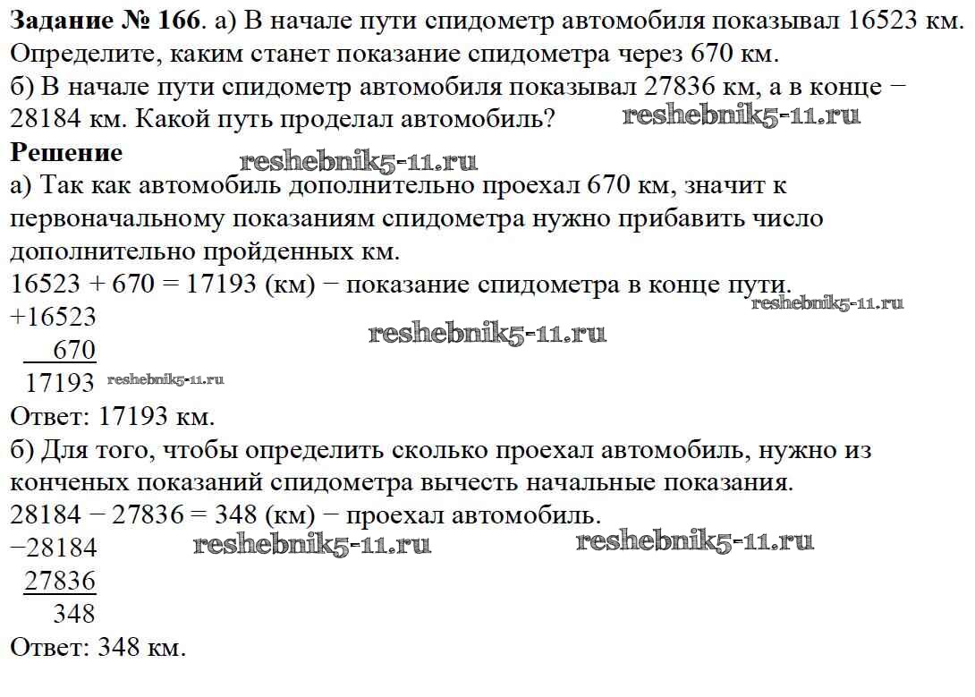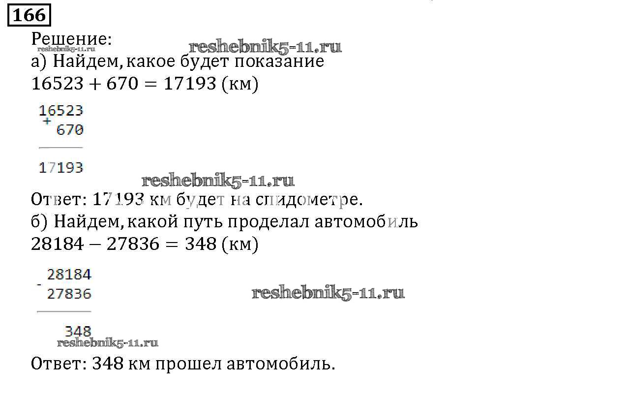 Готовая домашняя работа с ответами по Математике за 5 класс Дорофеев, Шарыгин, Суворова, Бунимович, Кузнецова, Минаева, Рослова Учебник Просвещение 2015 ФГОС - 3.1. Сложение и вычитание 166
