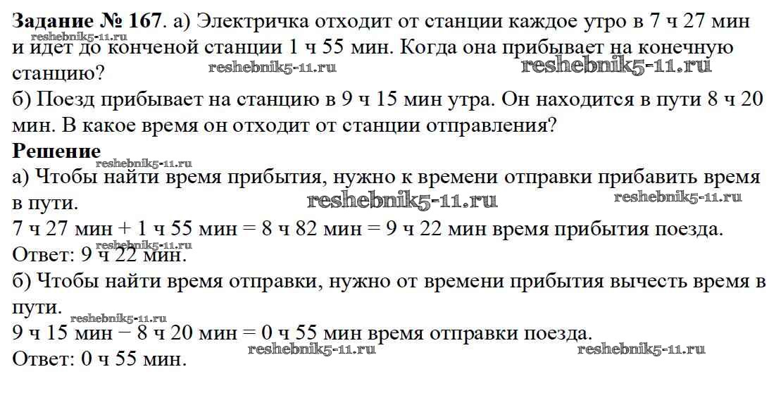Готовая домашняя работа с ответами по Математике за 5 класс Дорофеев, Шарыгин, Суворова, Бунимович, Кузнецова, Минаева, Рослова Учебник Просвещение 2015 ФГОС - 3.1. Сложение и вычитание 167