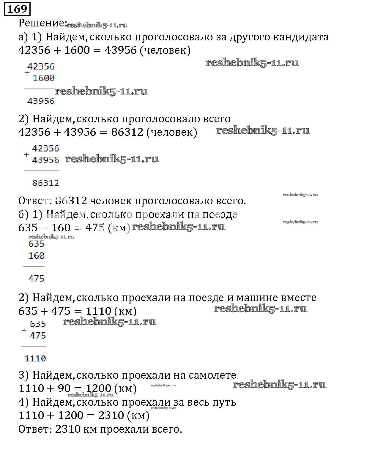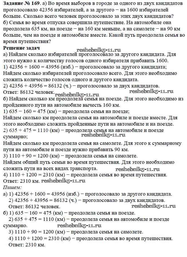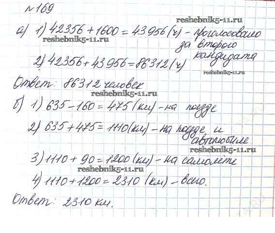 Готовая домашняя работа с ответами по Математике за 5 класс Дорофеев, Шарыгин, Суворова, Бунимович, Кузнецова, Минаева, Рослова Учебник Просвещение 2015 ФГОС - 3.1. Сложение и вычитание 169