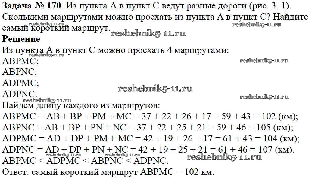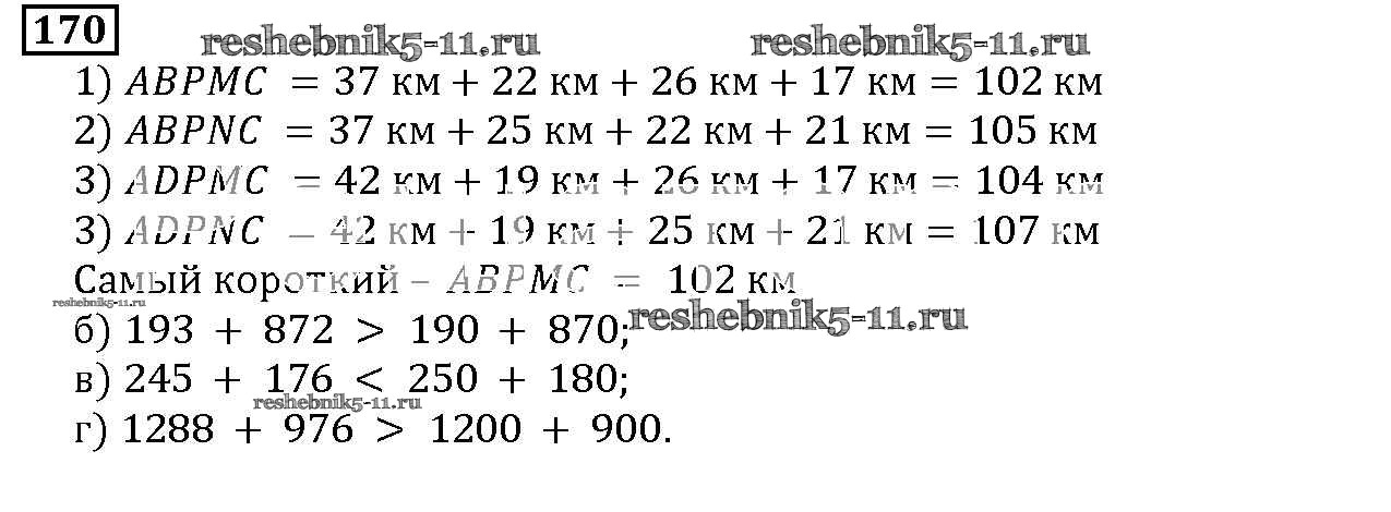 Готовая домашняя работа с ответами по Математике за 5 класс Дорофеев, Шарыгин, Суворова, Бунимович, Кузнецова, Минаева, Рослова Учебник Просвещение 2015 ФГОС - 3.1. Сложение и вычитание 170