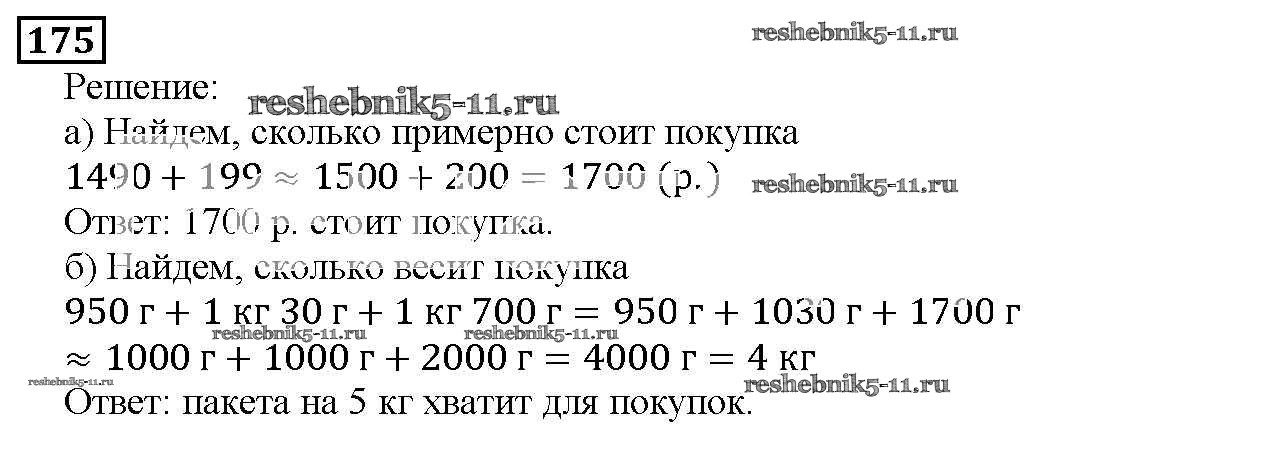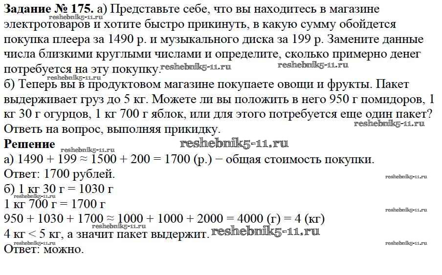 Готовая домашняя работа с ответами по Математике за 5 класс Дорофеев, Шарыгин, Суворова, Бунимович, Кузнецова, Минаева, Рослова Учебник Просвещение 2015 ФГОС - 3.1. Сложение и вычитание 175