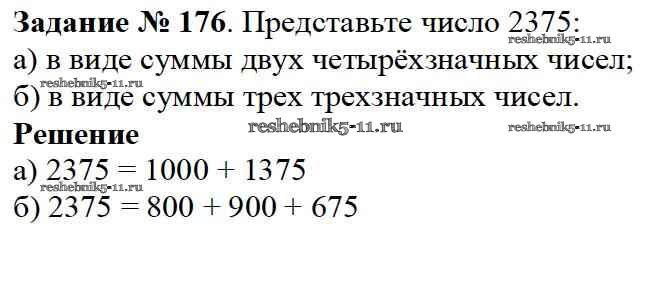 Готовая домашняя работа с ответами по Математике за 5 класс Дорофеев, Шарыгин, Суворова, Бунимович, Кузнецова, Минаева, Рослова Учебник Просвещение 2015 ФГОС - 3.1. Сложение и вычитание 176