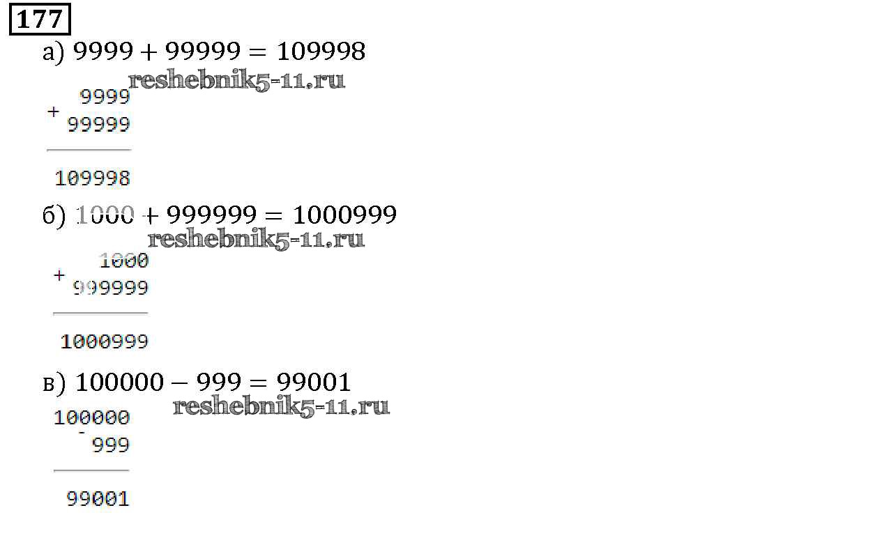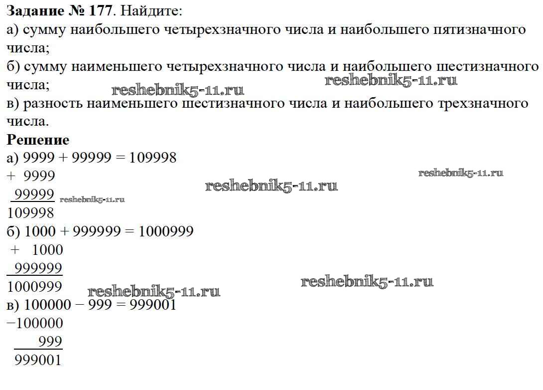 Готовая домашняя работа с ответами по Математике за 5 класс Дорофеев, Шарыгин, Суворова, Бунимович, Кузнецова, Минаева, Рослова Учебник Просвещение 2015 ФГОС - 3.1. Сложение и вычитание 177