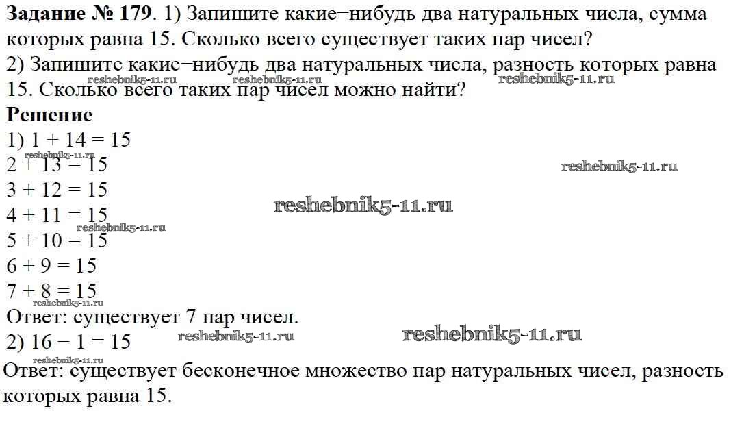 Готовая домашняя работа с ответами по Математике за 5 класс Дорофеев, Шарыгин, Суворова, Бунимович, Кузнецова, Минаева, Рослова Учебник Просвещение 2015 ФГОС - 3.1. Сложение и вычитание 179