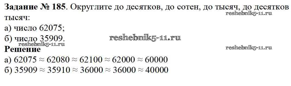 Готовая домашняя работа с ответами по Математике за 5 класс Дорофеев, Шарыгин, Суворова, Бунимович, Кузнецова, Минаева, Рослова Учебник Просвещение 2015 ФГОС - 3.1. Сложение и вычитание 185