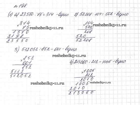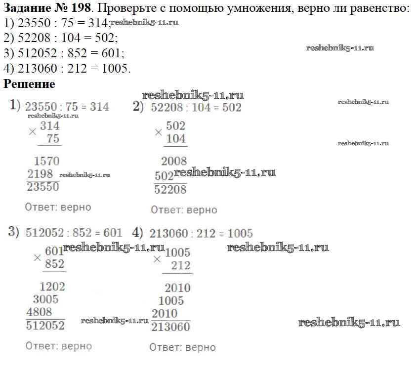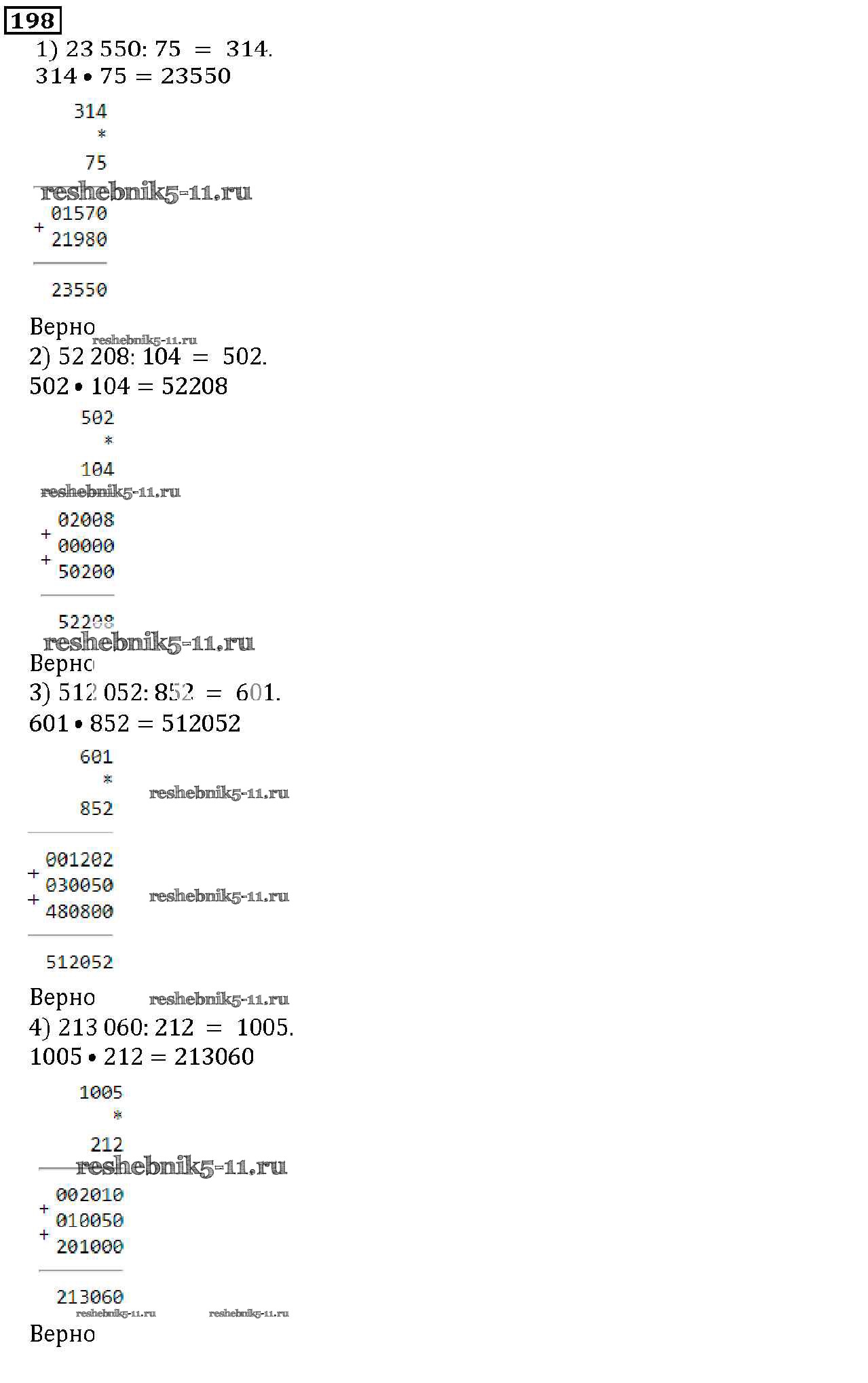 Готовая домашняя работа с ответами по Математике за 5 класс Дорофеев, Шарыгин, Суворова, Бунимович, Кузнецова, Минаева, Рослова Учебник Просвещение 2015 ФГОС - 3.2. Умножение и деление 198