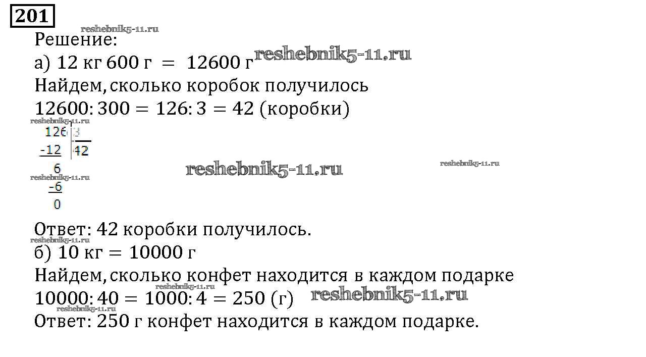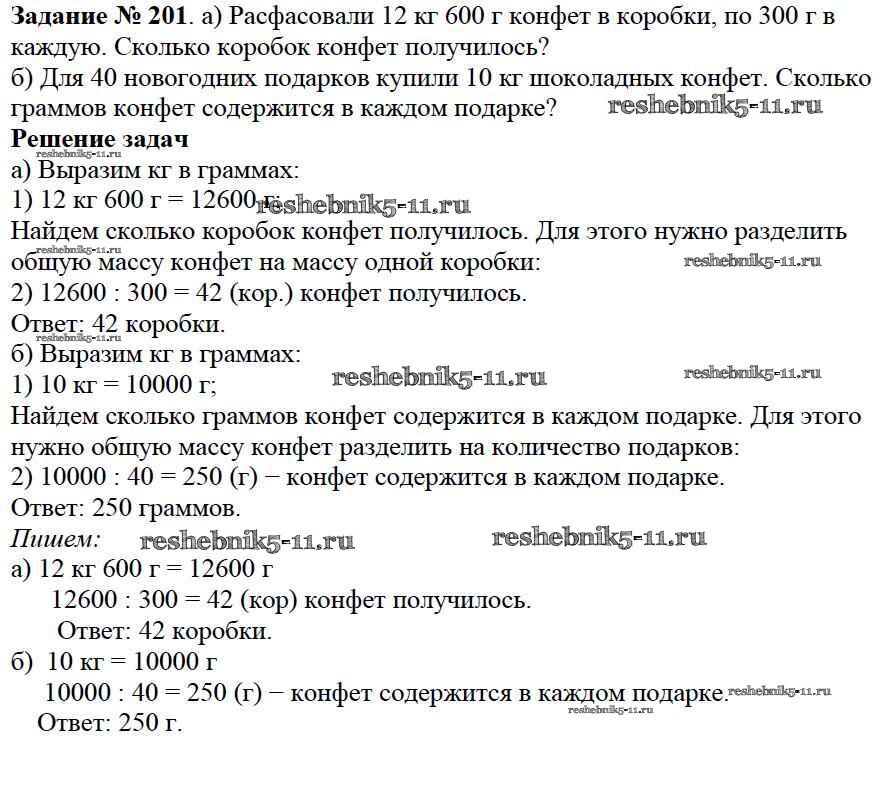 Готовая домашняя работа с ответами по Математике за 5 класс Дорофеев, Шарыгин, Суворова, Бунимович, Кузнецова, Минаева, Рослова Учебник Просвещение 2015 ФГОС - 3.2. Умножение и деление 201