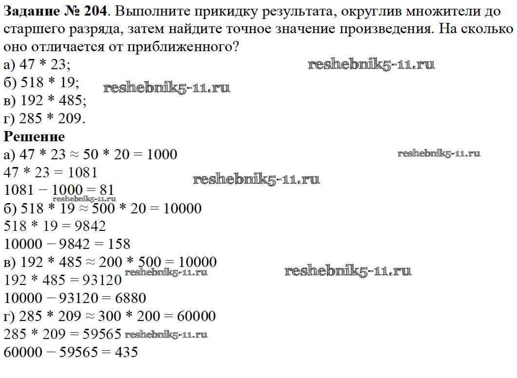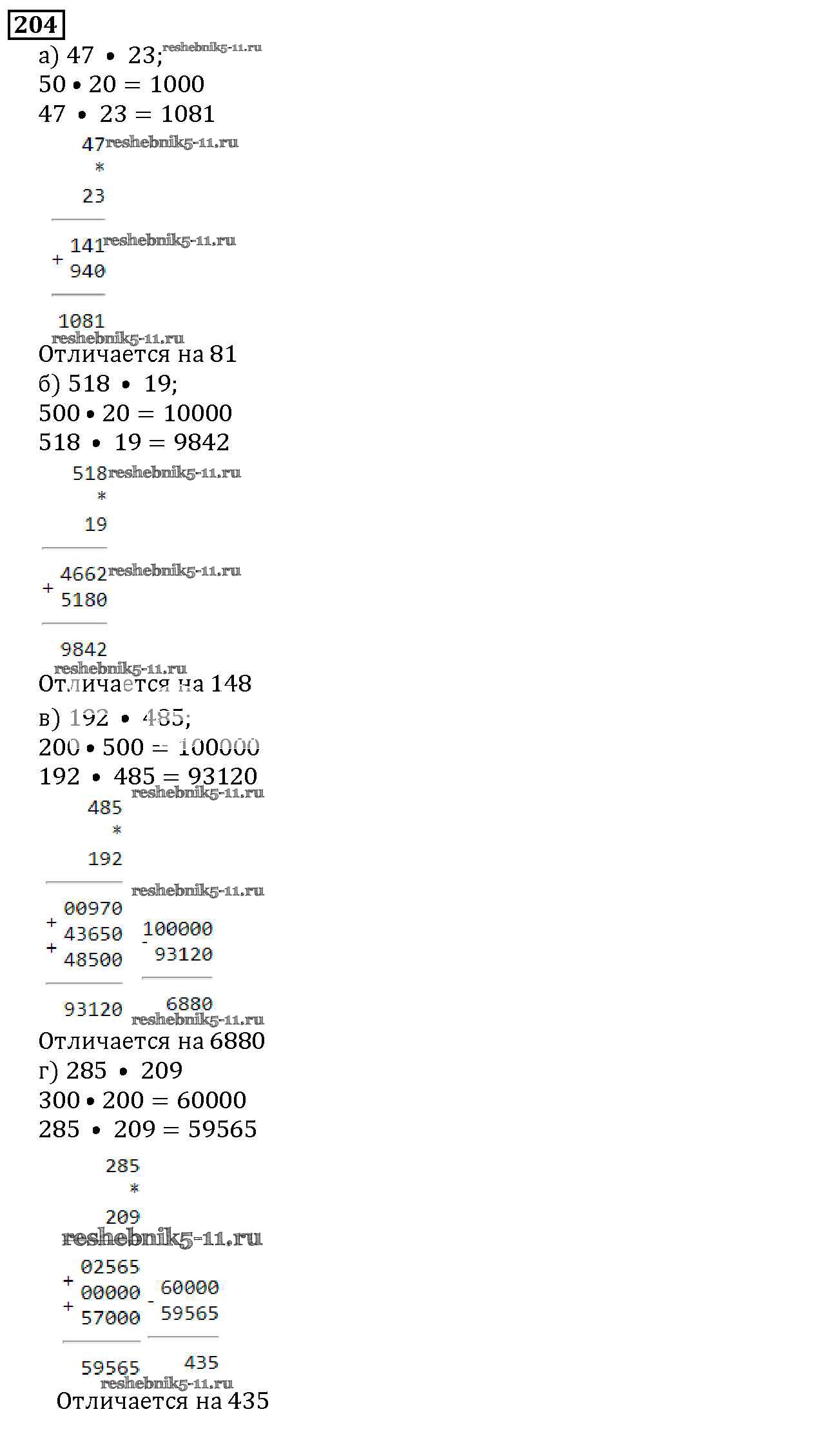 Готовая домашняя работа с ответами по Математике за 5 класс Дорофеев, Шарыгин, Суворова, Бунимович, Кузнецова, Минаева, Рослова Учебник Просвещение 2015 ФГОС - 3.2. Умножение и деление 204
