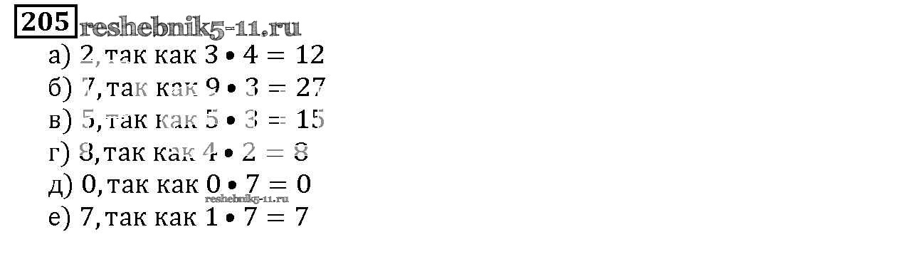 Готовая домашняя работа с ответами по Математике за 5 класс Дорофеев, Шарыгин, Суворова, Бунимович, Кузнецова, Минаева, Рослова Учебник Просвещение 2015 ФГОС - 3.2. Умножение и деление 205