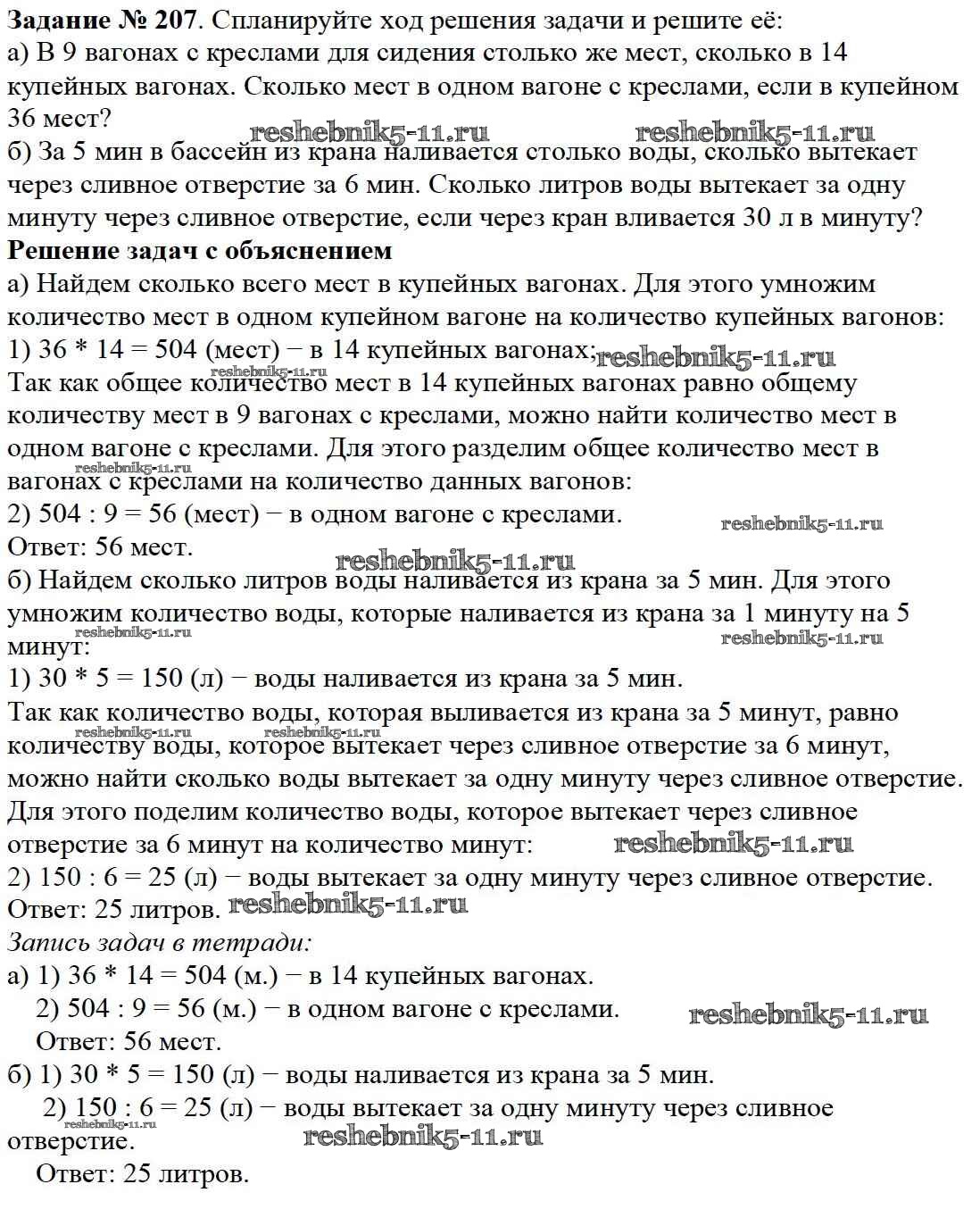 Готовая домашняя работа с ответами по Математике за 5 класс Дорофеев, Шарыгин, Суворова, Бунимович, Кузнецова, Минаева, Рослова Учебник Просвещение 2015 ФГОС - 3.2. Умножение и деление 207