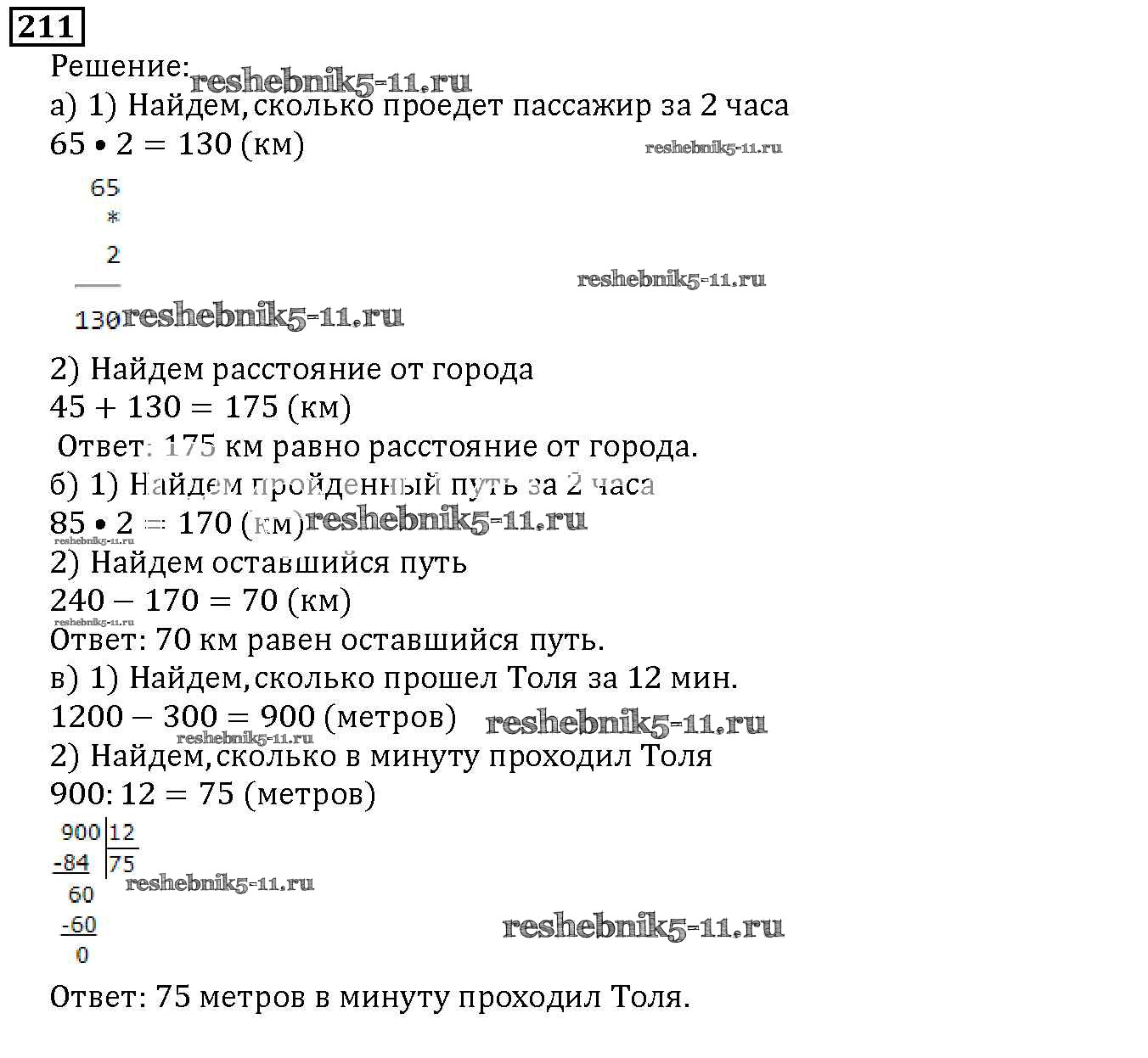 Готовая домашняя работа с ответами по Математике за 5 класс Дорофеев, Шарыгин, Суворова, Бунимович, Кузнецова, Минаева, Рослова Учебник Просвещение 2015 ФГОС - 3.2. Умножение и деление 211