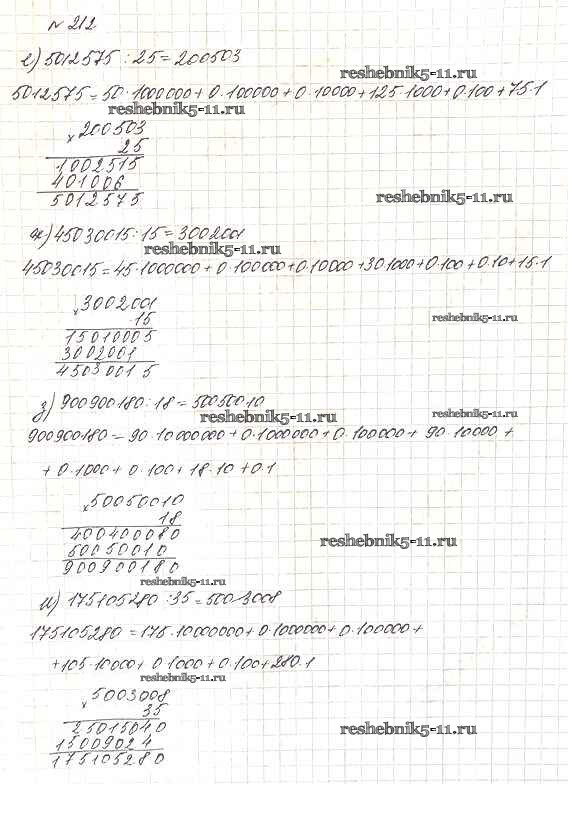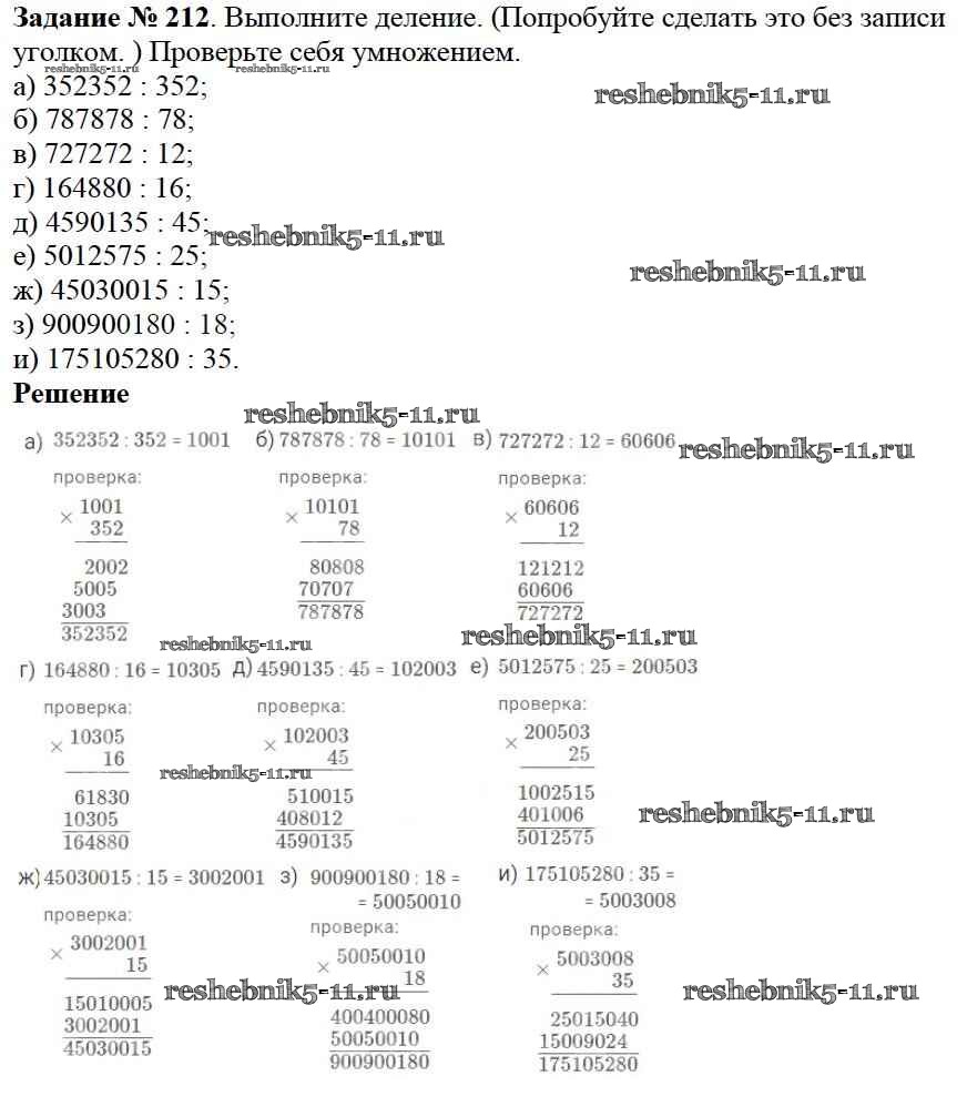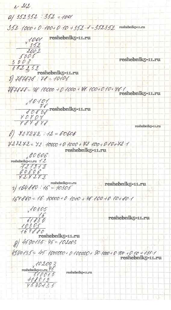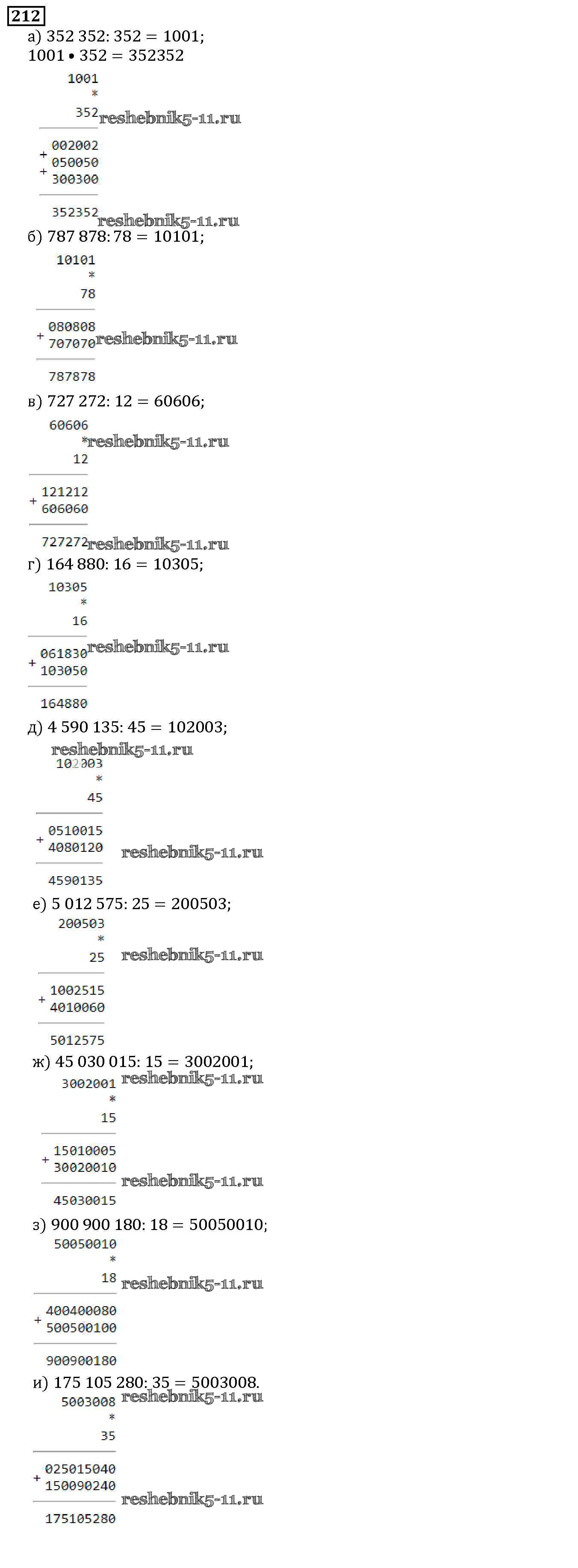 Готовая домашняя работа с ответами по Математике за 5 класс Дорофеев, Шарыгин, Суворова, Бунимович, Кузнецова, Минаева, Рослова Учебник Просвещение 2015 ФГОС - 3.2. Умножение и деление 212