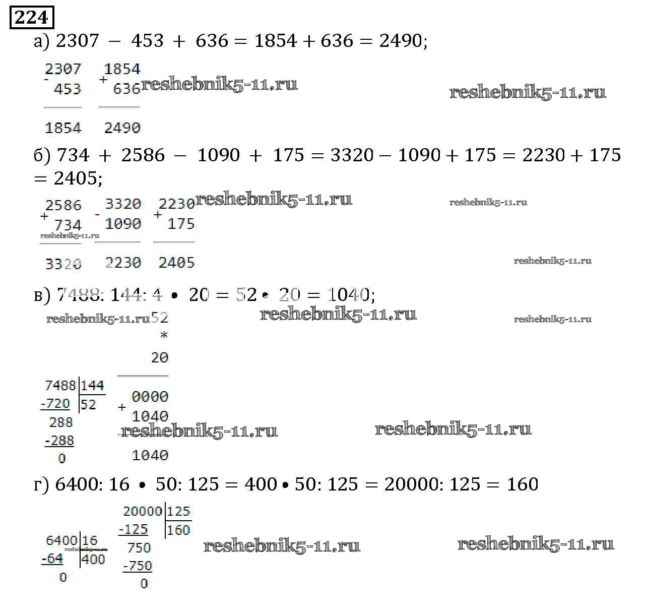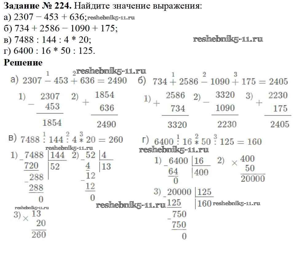 Готовая домашняя работа с ответами по Математике за 5 класс Дорофеев, Шарыгин, Суворова, Бунимович, Кузнецова, Минаева, Рослова Учебник Просвещение 2015 ФГОС - 3.3. Порядок действий в вычислениях 224