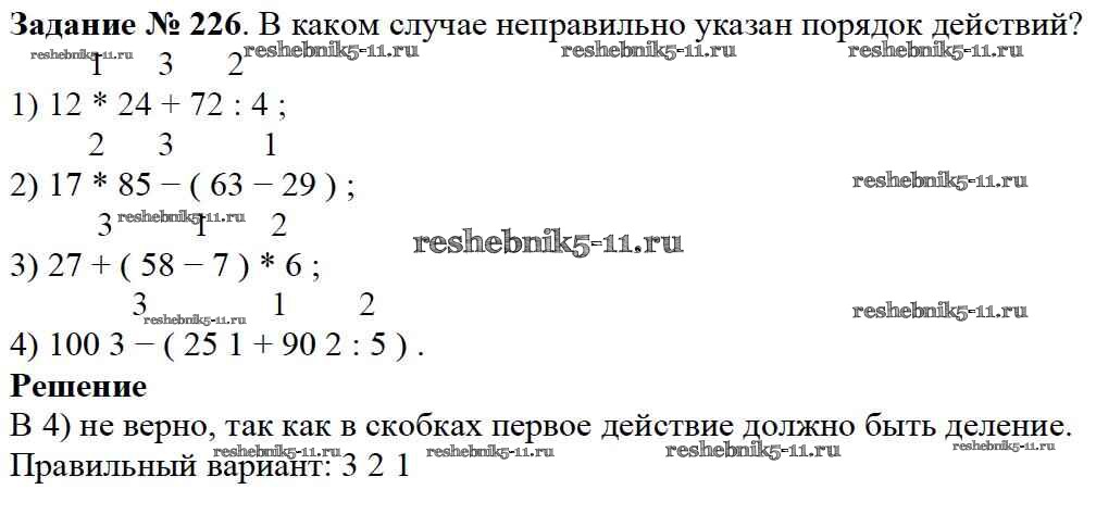 Готовая домашняя работа с ответами по Математике за 5 класс Дорофеев, Шарыгин, Суворова, Бунимович, Кузнецова, Минаева, Рослова Учебник Просвещение 2015 ФГОС - 3.3. Порядок действий в вычислениях 226