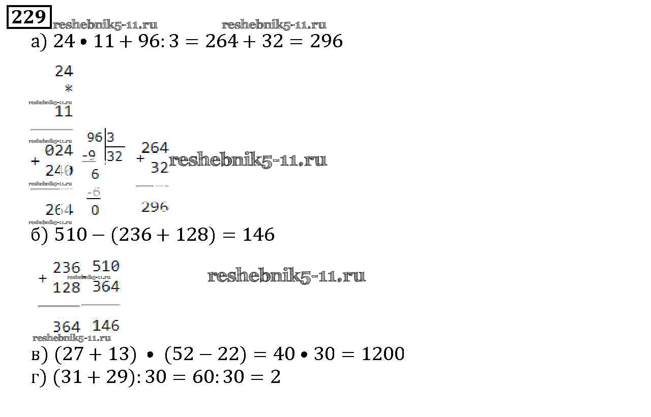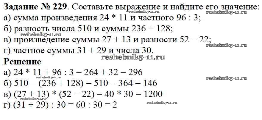 Готовая домашняя работа с ответами по Математике за 5 класс Дорофеев, Шарыгин, Суворова, Бунимович, Кузнецова, Минаева, Рослова Учебник Просвещение 2015 ФГОС - 3.3. Порядок действий в вычислениях 229