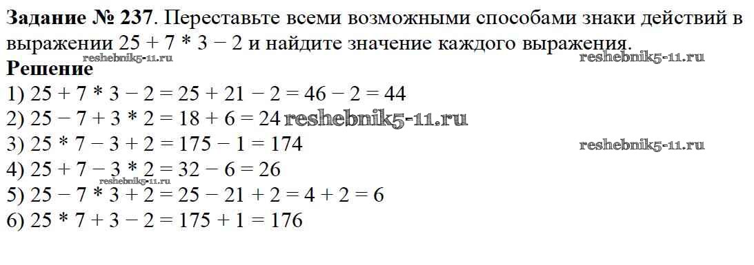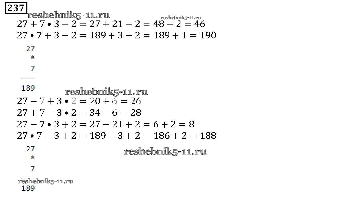 Готовая домашняя работа с ответами по Математике за 5 класс Дорофеев, Шарыгин, Суворова, Бунимович, Кузнецова, Минаева, Рослова Учебник Просвещение 2015 ФГОС - 3.3. Порядок действий в вычислениях 237