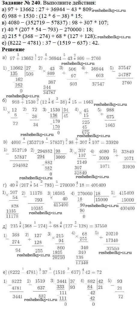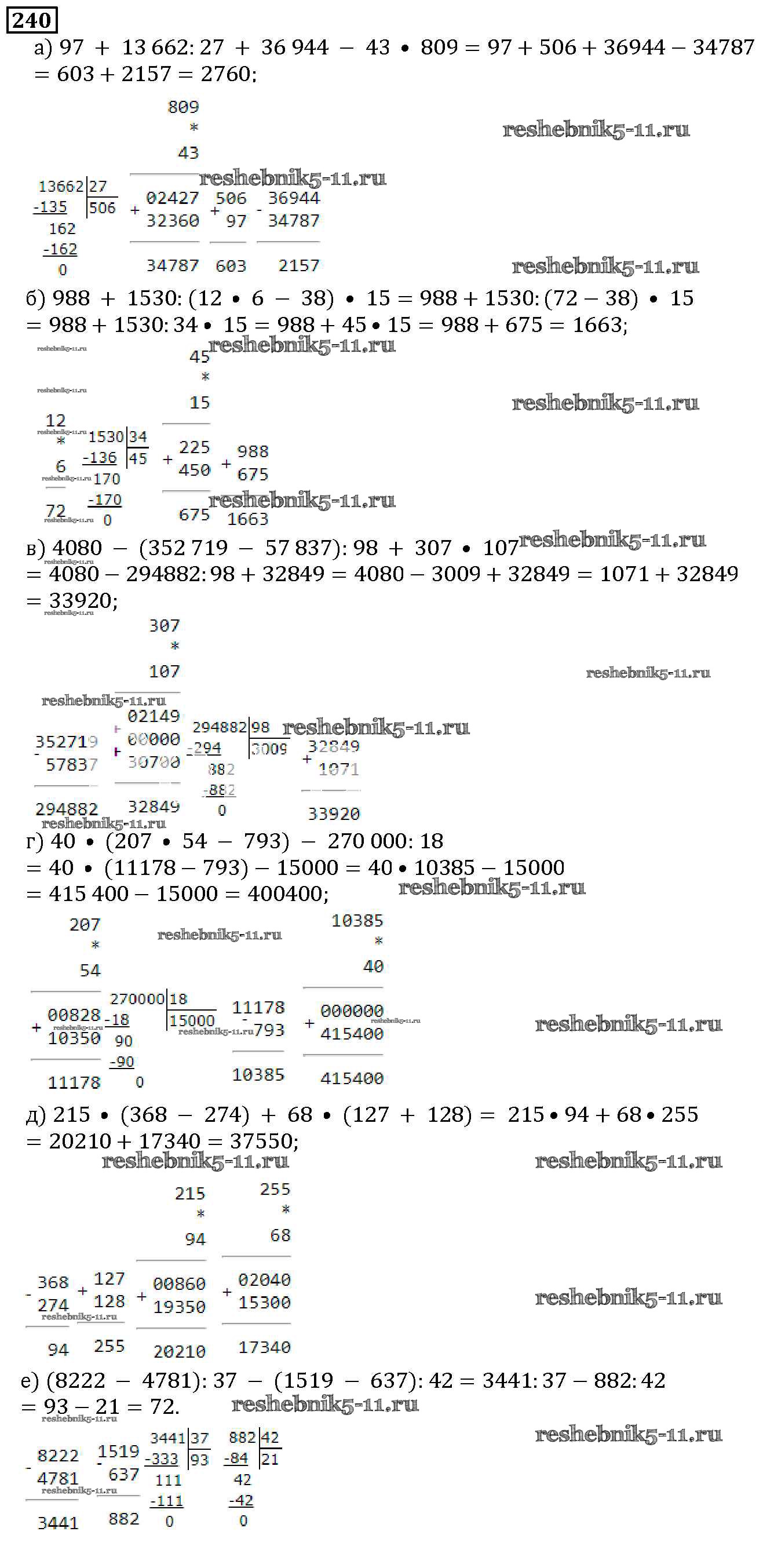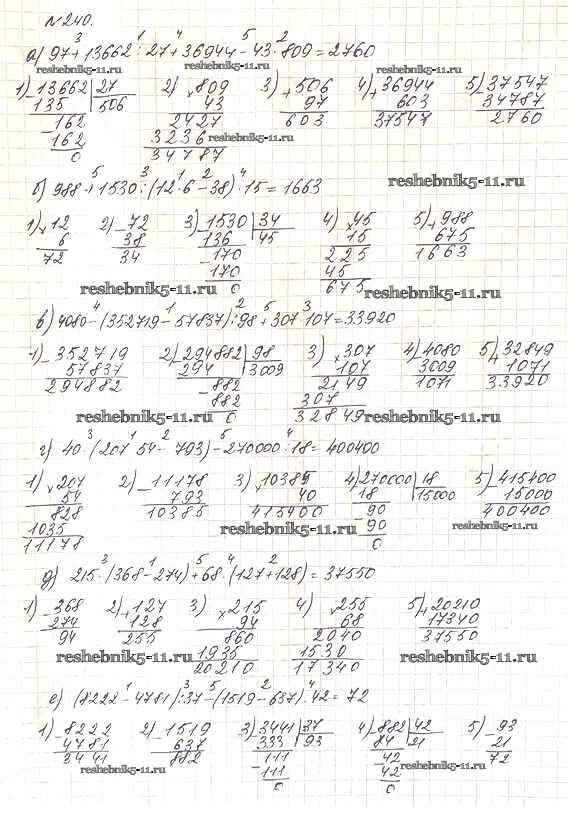 Готовая домашняя работа с ответами по Математике за 5 класс Дорофеев, Шарыгин, Суворова, Бунимович, Кузнецова, Минаева, Рослова Учебник Просвещение 2015 ФГОС - 3.3. Порядок действий в вычислениях 240