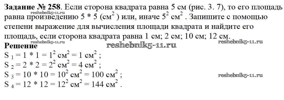 Готовая домашняя работа с ответами по Математике за 5 класс Дорофеев, Шарыгин, Суворова, Бунимович, Кузнецова, Минаева, Рослова Учебник Просвещение 2015 ФГОС - 3.4. Степень числа 258